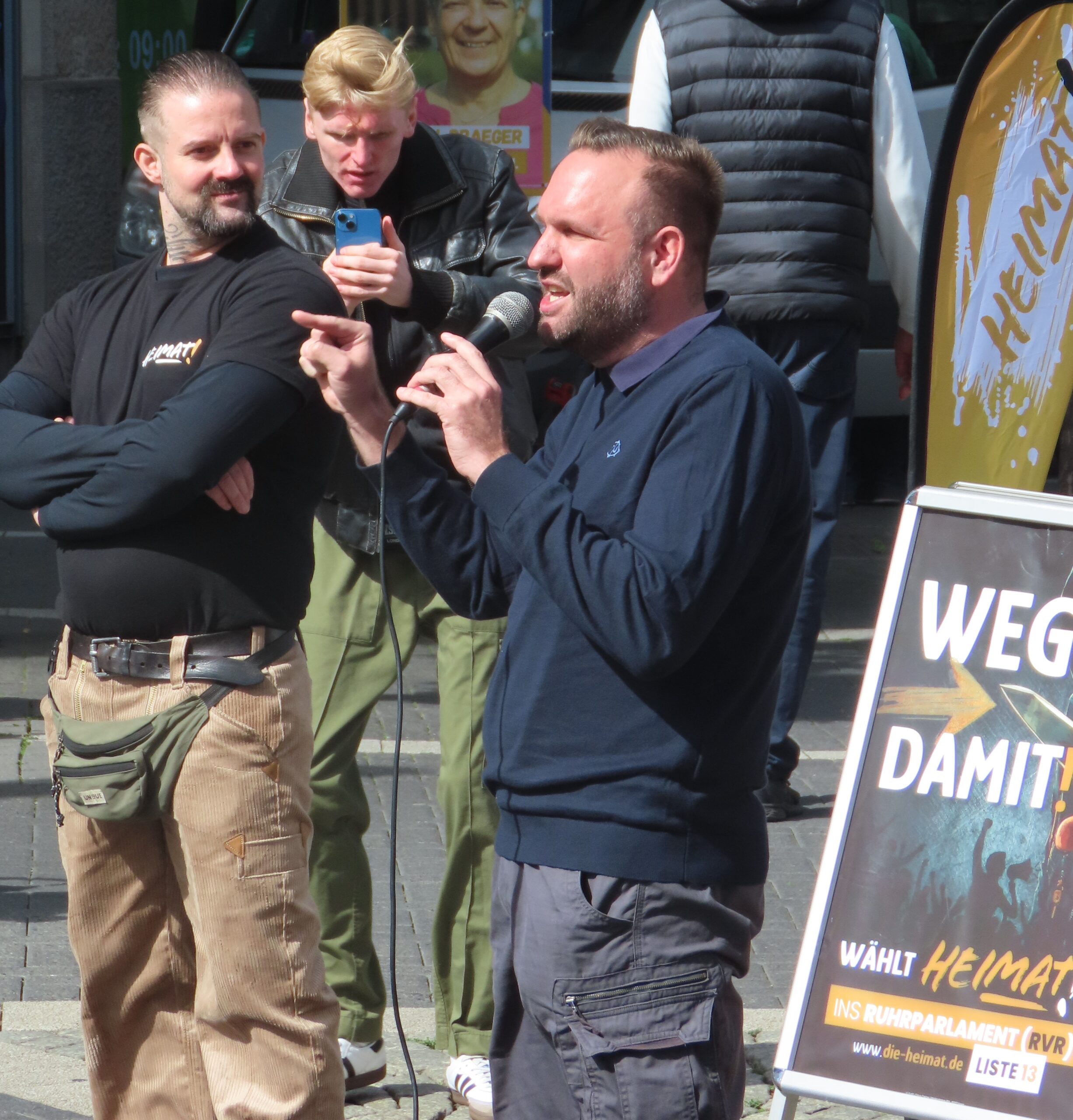In den Redebeiträgen vor der Ankunft der „Tour de Ruhr“ der „Heimat“ hatten Redner:innen daran erinnert, dass die NPD nur deshalb nicht vom Bundesverfassungsgericht verboten worden sei, weil sie so irrelevant ist, dass sie keine Gefahr darstelle. Das Gericht bestätigte auch die Bundestagsentscheidung, der NPD alle öffentlichen Mittel zu entziehen.